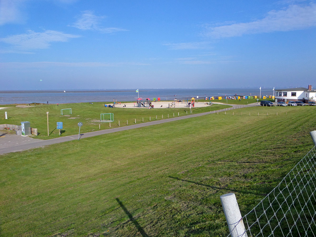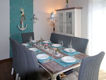 Meermomente Nordsee in Burhave, 4 Schlafzimmer bis 9 Personen, Luxus Wellnessurlaub, Whirlpool, Sauna, 2 Bäder, Ofen, Garten, Balkon im OG, Spielezimmer mit Multifunktionsspieltisch (z. B. Kicker, Billard), Dartscheibe, Playstation 4, Deichnähe.