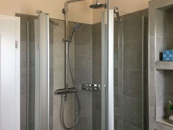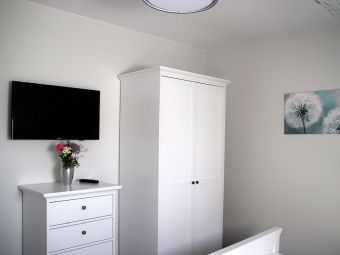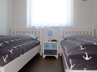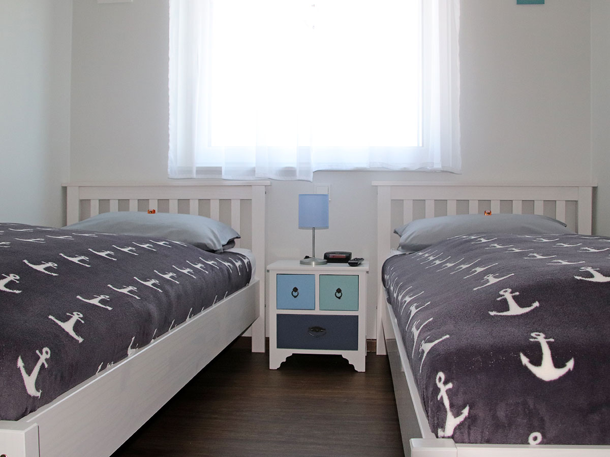 Alle Zimmer sind mit elektrischen Rolläden ausgestattet und verfügen über eine Fußbodenheizung. Wohn,-Bad und Schlafzimmerfenster verfügen über Insektenschutzgitter. Ein Hochstuhl, Kindergeschirr, Pürrierstab vervollständigen die Ausstattung der kleinen Gäste.