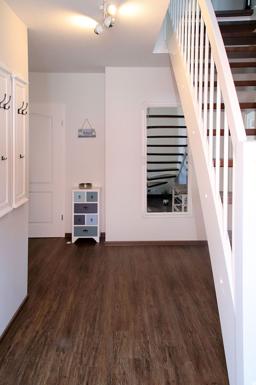 Das im Landhaus Vintagestil hochwertig eingerichtete Haus verfügt über eine sehr exklusive Ausstattung, großes Wellnessbad mit Sauna und Whirlpool (ca. 17 m²), Terrasse, Balkon im OG, Kaminofen, Fußbodenheizung, Insektenschutz.